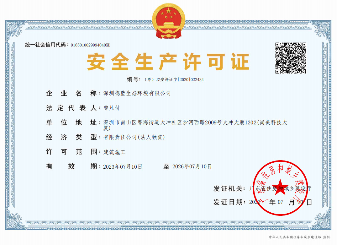 深圳德藍(lán)生態(tài)環(huán)境有限公司信用等級(jí)證書AAA