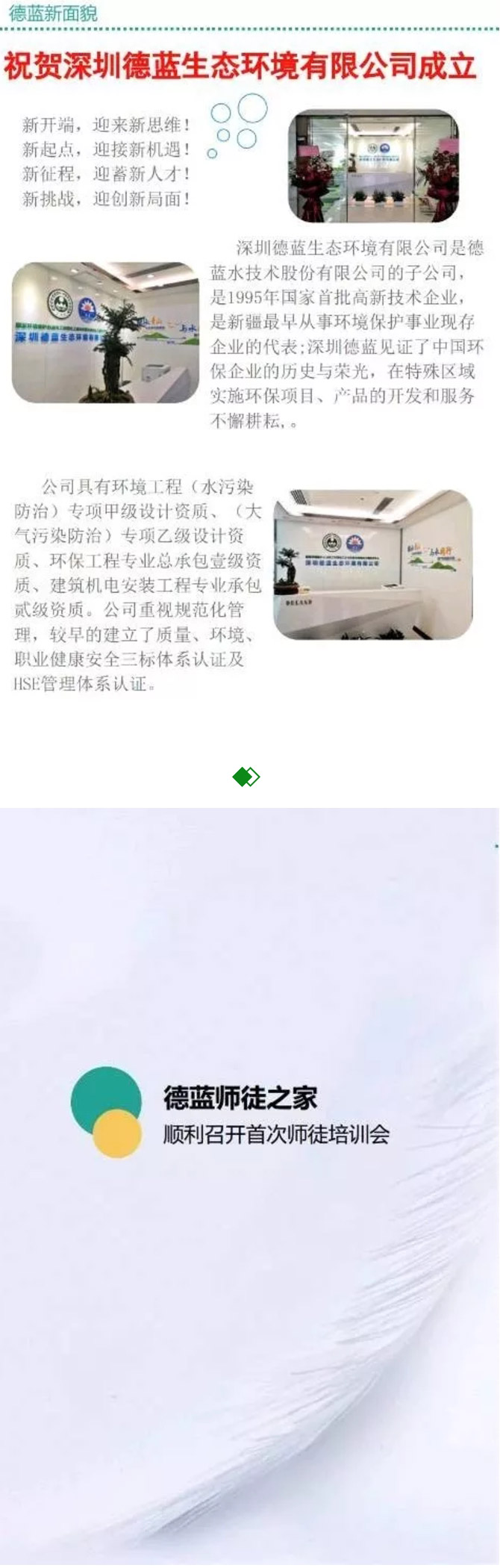 德藍(lán)水技術(shù)股份有限公司 關(guān)于成立“綠
