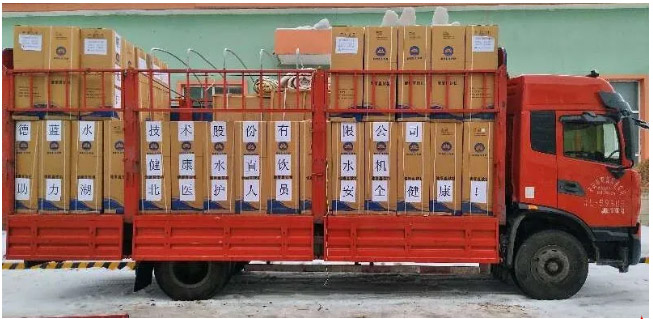 2月28日經(jīng)過封閉生產(chǎn)住廠人員連日來加班加點聯(lián)系捐贈物資運輸車輛,測試、包裝、裝配健康水直飲水機設(shè)備,載滿德藍人滿滿心意的車輛有序從公司出發(fā)駛向各捐贈地。