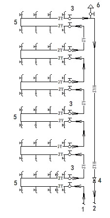 4—流量調(diào)節(jié)閥 5—單元樓棟 6—排氣閥