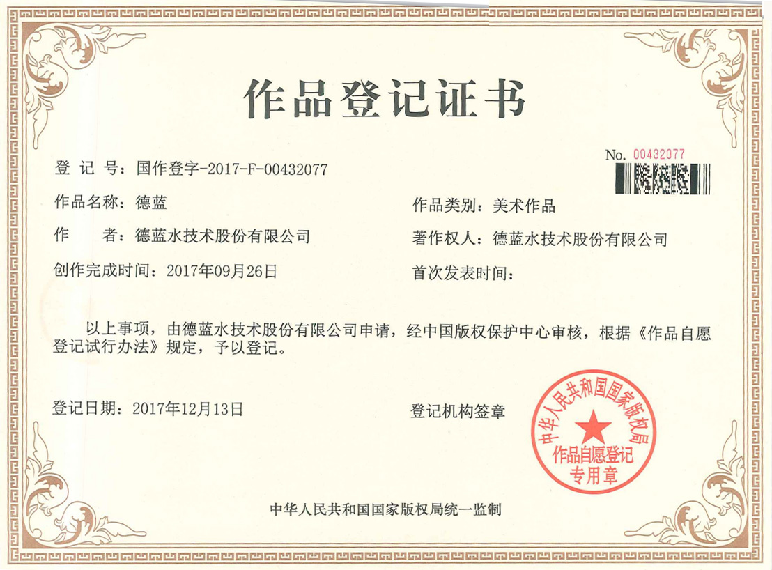 德藍(lán)作品登記證書