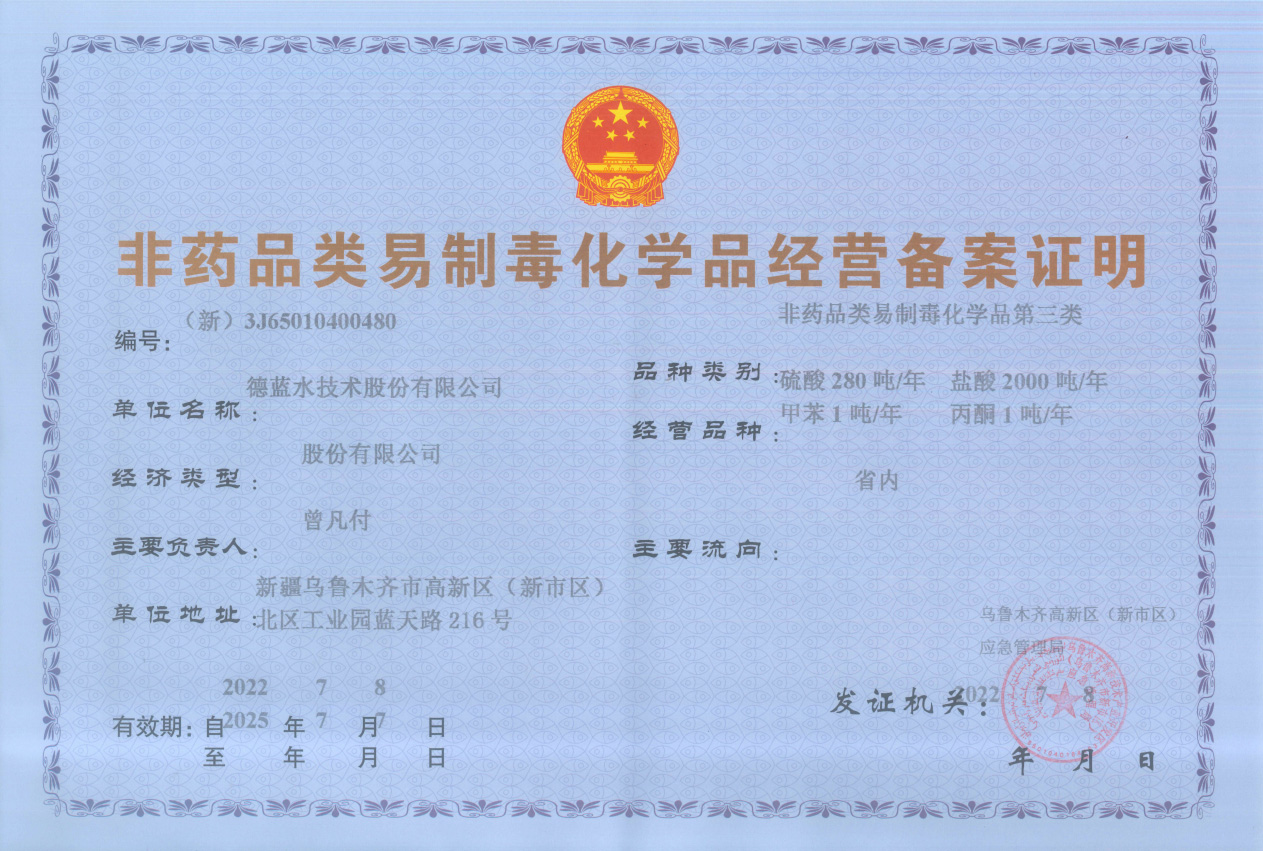德藍(lán)非藥品類易制毒化學(xué)品經(jīng)營(yíng)備案證明