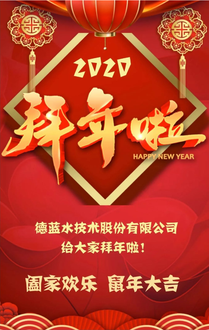 在新的一年到來之際,德藍水技術(shù)股份有限公司向大家致以誠摯的節(jié)日問候,向關(guān)心支持我公司事業(yè)發(fā)展的各界朋友表示誠摯的謝意。祝大家春節(jié)愉快,闔家歡樂,鼠年安康!