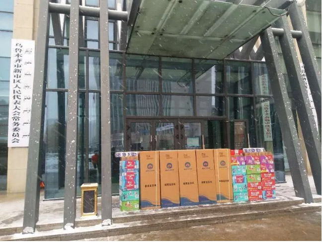 圖為捐贈給烏魯木齊高新區(qū)防疫指揮部的生活物資(其余85臺健康水直飲水機我公司安排專業(yè)人員到各防疫站現(xiàn)場安裝調(diào)試)